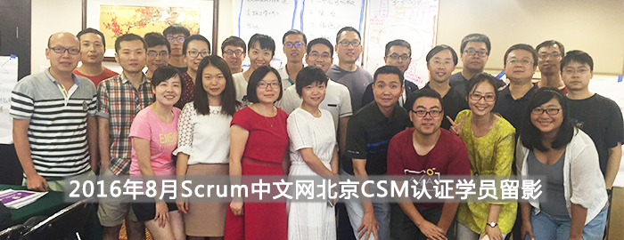 2016年8月中旬Scrum中文网北京CSM认证班圆满结束。本次课程由Scrum中文网资深敏捷教练Bill Li 授课。在两天的课程中,Bill老师循序渐进的引领大家进入Scrum的世界。以下是本次课程留影: