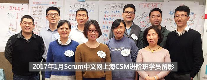 2017年1月6-7日Scrum中文网上海CSM进阶班圆满结束。本次课程由Scrum中文网资深敏捷教练李老师授课。敏捷的导入与发展需要个人、团队及组织层面方方面面的转变。这个过程需要有很好的全方位技能来帮助个人、团队及组织层面实施更有成效的敏捷和Scrum。