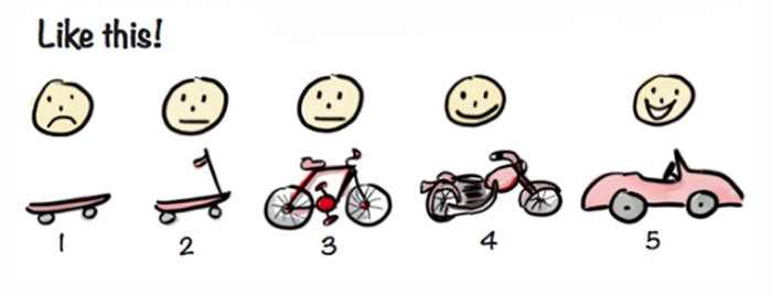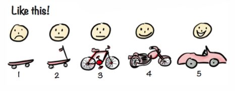 下面这行图显示了,对迭代和增量产品开发(又称为敏捷)的一个常见误解。