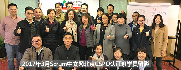 2017年3月下旬Scrum中文网北京CSPO认证班圆满结束。本次课程由Scrum中文网资深敏捷教练李老师授课。在两天的课程中,李老师循序渐进的引领大家进入Scrum的世界。