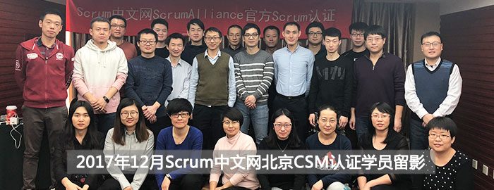 2017年12月22-23日Scrum中文网北京CSM认证班圆满结束。本次课程由Scrum认证培训师CST黄老师授课,课堂氛围非常活跃,学员们热情参与,大家都非常喜欢这种互动体验式授课方式。课堂上丰富的实战案例讲解也让大家收获满满。