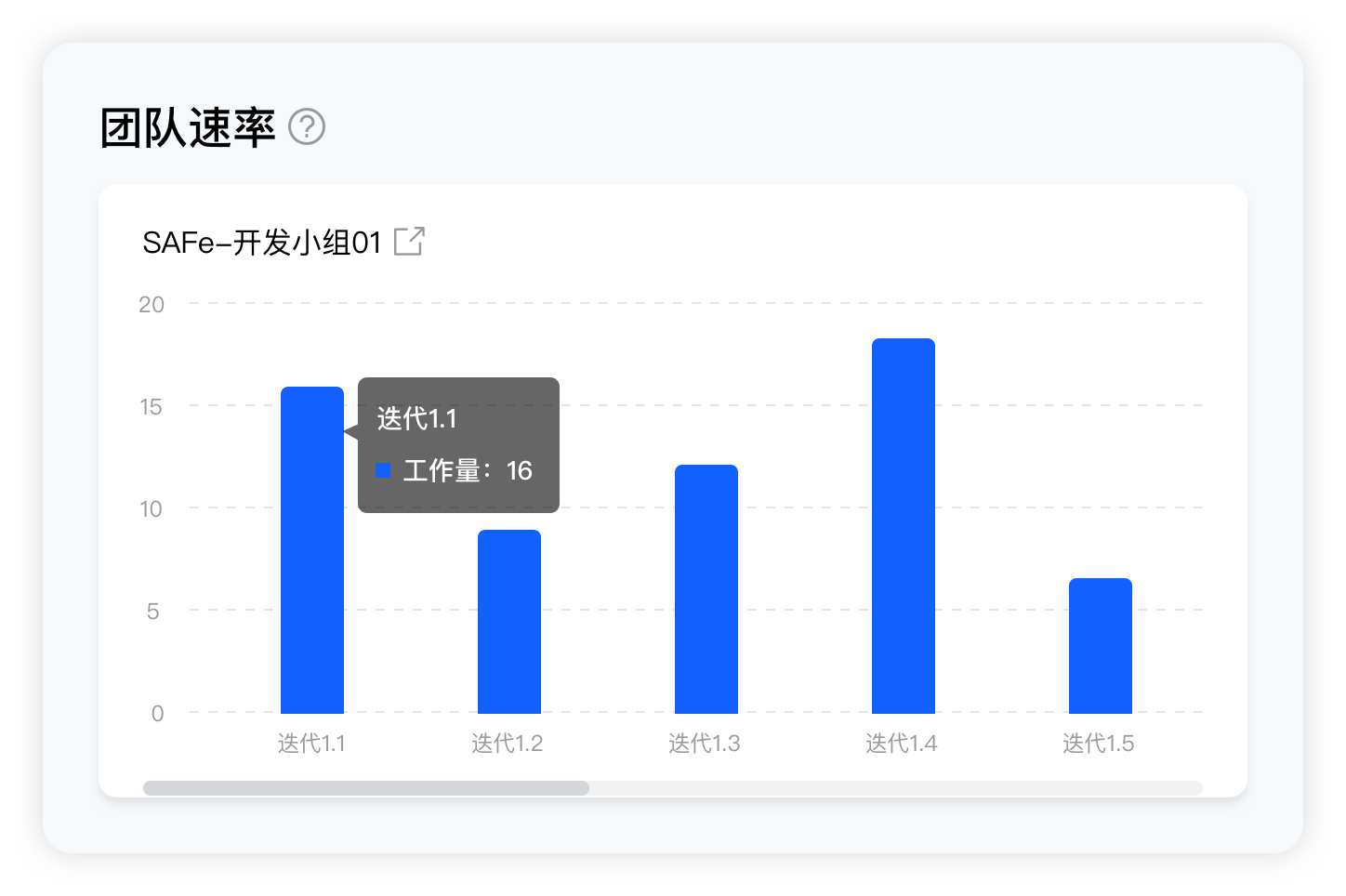 每个迭代中,Leangoo会自动记录当前迭代完成的工作量,并且自动生成团队速率的可视化统计图表,以便团队可以了解团队效率变化的趋势并进行分析