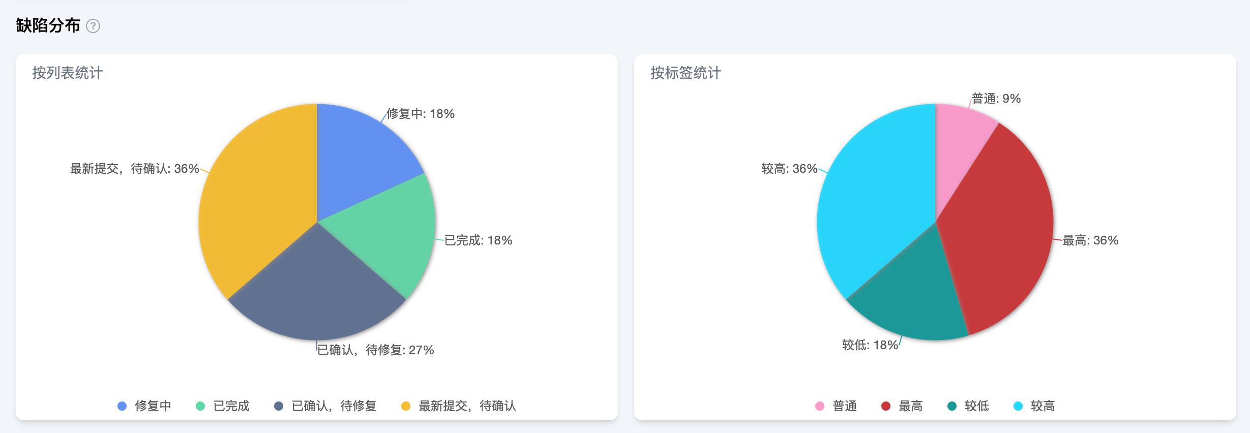 缺陷看板中也支持通过标签统计缺陷情况。