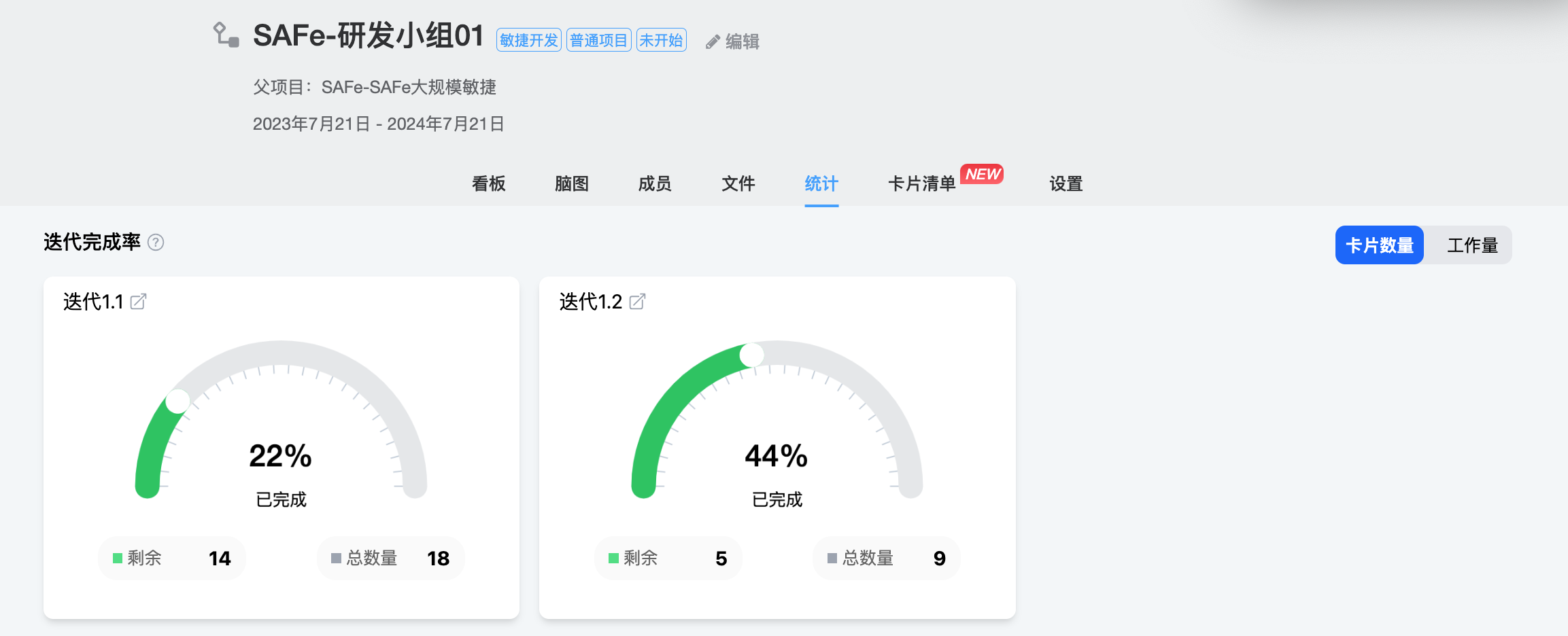 迭代完成率是统计项目内每个迭代看板的完成情况。