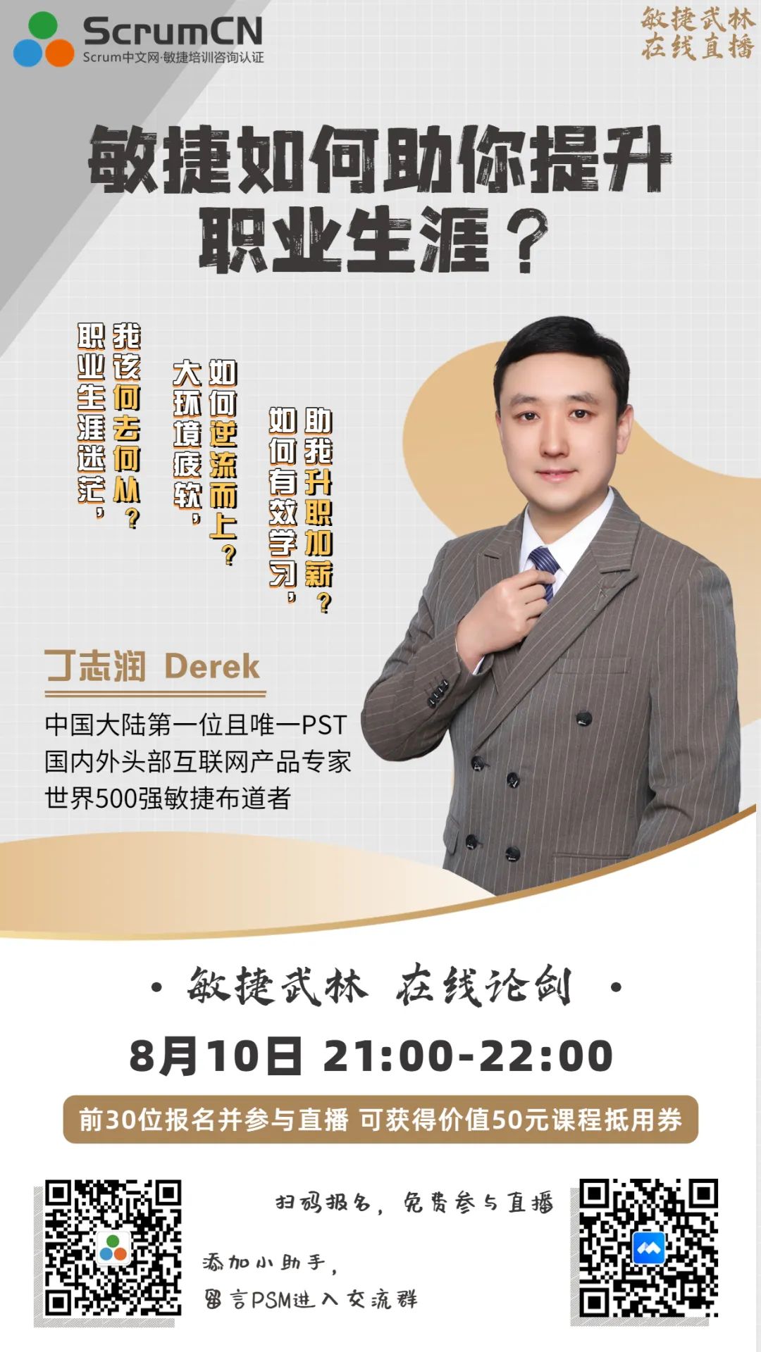 在敏捷的职业道路上,你有哪些困惑,想交流什么话题,有哪些经验与我们分享?欢迎来到周四晚的武林直播间,与大咖面对面交流。也欢迎推荐给身边的同事和朋友,一起加入学习,共同探索。