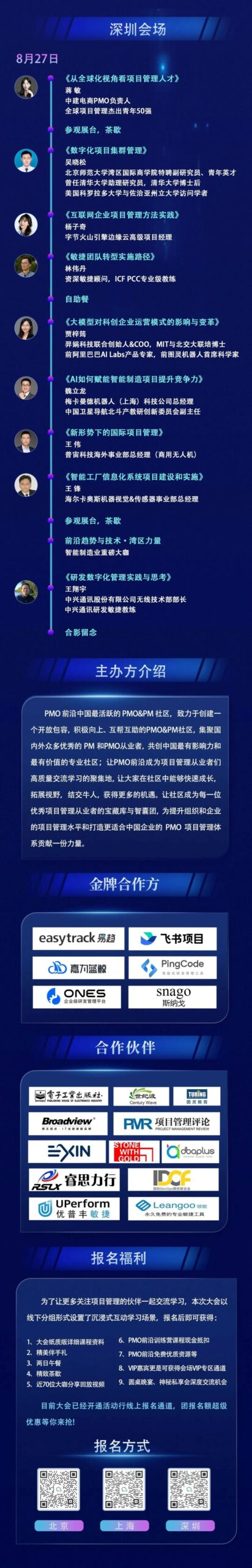 我们一直思考,怎样才能让咱们伙伴们更快更好地成长呢?我们发现人生从来都不是什么线性成长的,经常是一个顿悟,一个启发,一段分享会让你在短时间内快速成长。很多人处于平台停滞期,对未来发展比较迷茫,没有突破,当这个时候,最好的方式不是闷头干活,应该抬头看路,走出去听听那些已经成功的高手们披荆之路,你会发现很多弯路和坑你都可以避免,还能获得很多启发和方向。甚至还能和大家成为朋友,随时交流沟通。为此,咱们中国PMO&PM大会组委会,给想了解和学习项目管理知识的伙伴们争取最大的优惠,希望提供更多学习交流机会。