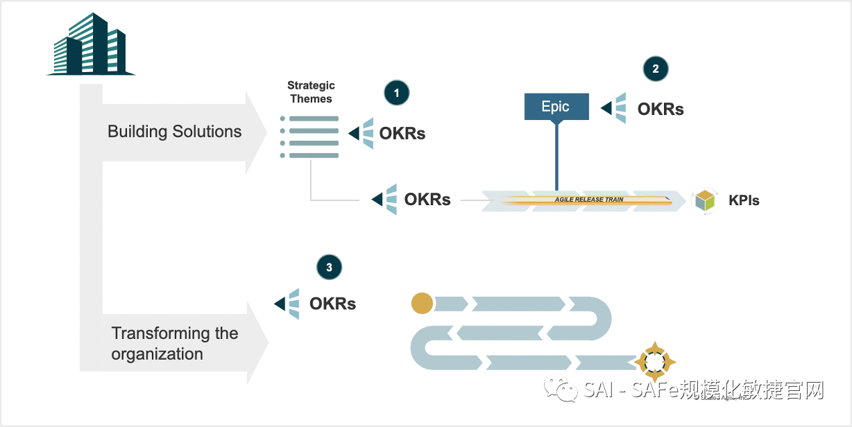 加强整个SAFe投资组合的战略一致性–为战略主题使用OKRs的目的是通过具体、明确和可度量的行动来定义和跟踪其进展 为史诗和精益商业案例(论证)定义业务成效–使用OKRs来帮助发现潜在的史诗,以进入投资组合看板系统中 用OKRs的定义来定义史诗 — 可以明确期望的业务产出和结果。为SAFe转型设定改进目标,应用OKRs可以用来衡量SAFe变革项目的成功