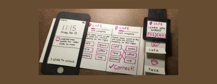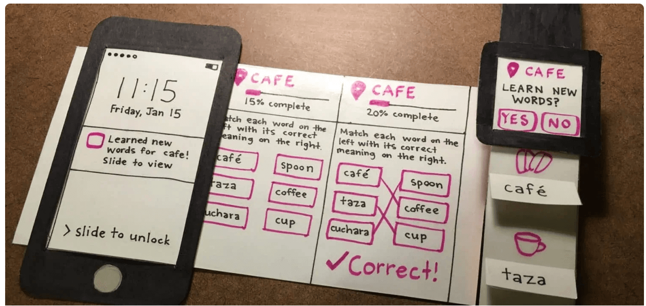 用笔和纸制作的基本手工设计。纸上素描原型可用于一种名为 “游击测试 “的测试形式。这是一种最简单形式的测试,用于验证高级别的想法并了解潜在问题。这种测试可以在街上、商场或任何找到目标群体的地方进行。