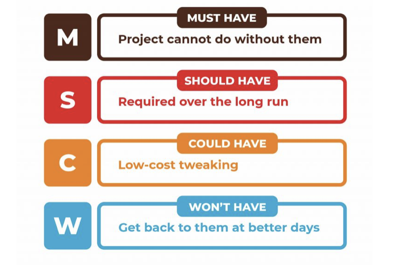 MoSCoW法则是一种简单直观的优先级分类方法,将需求分为四个类别:必须有(Must have)、应该有(Should have)、可以有(Could have)和不要有(Won’t have this time)。通过与项目团队和利益相关者协商,对每个需求或特性进行分类,团队可以明确哪些功能是项目成功的关键(必须有),哪些虽重要但可以推迟(应该有),以及哪些可有可无(可以有)。这种方法帮助团队集中资源和注意力在最关键的需求上,从而实现价值最大化。MoSCoW法则提供了一种灵活的优先级设置框架,使得项目计划可以根据项目进展和环境变化进行调整。
