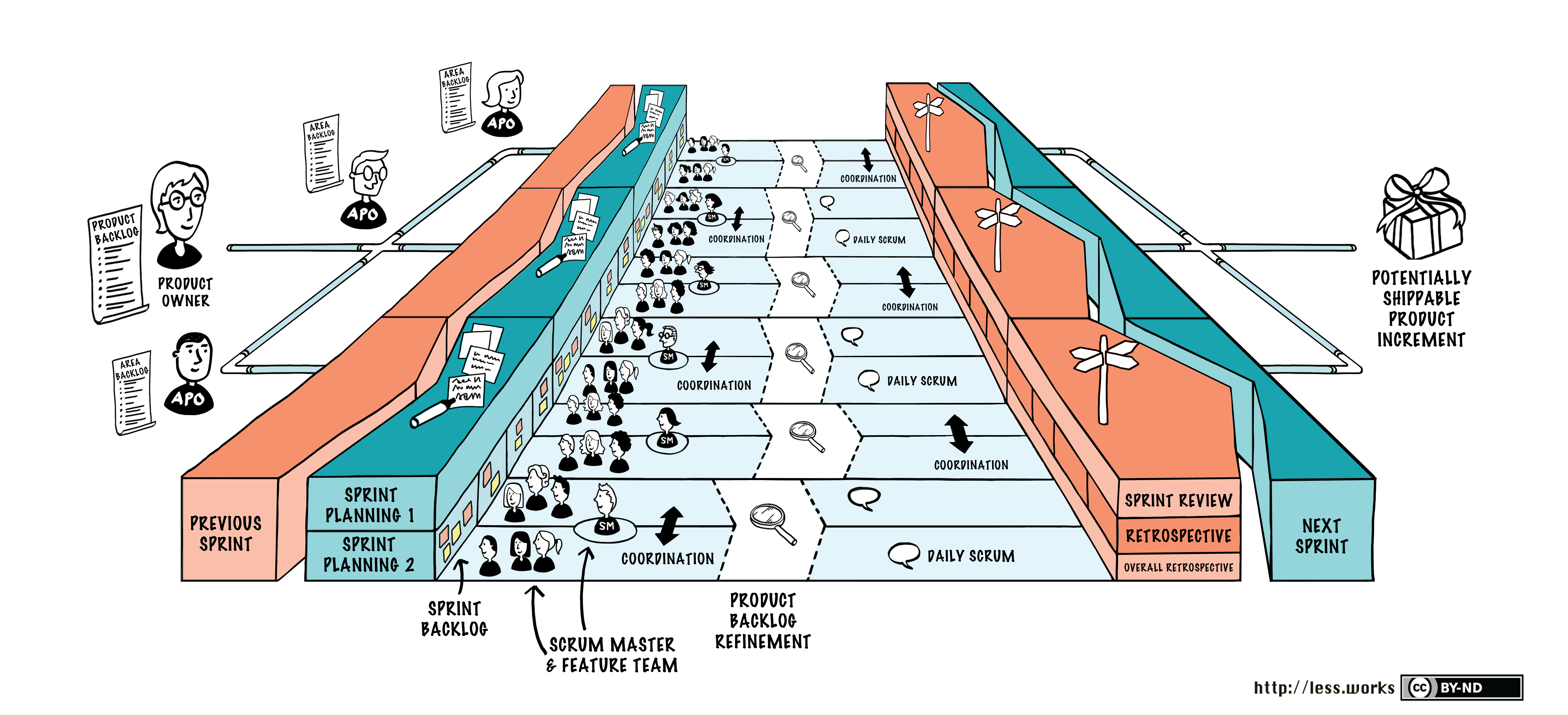 如今,两个 LeSS 框架(小型 LeSS 和大型 LeSS)已被全球不同领域的大型集团所采用: