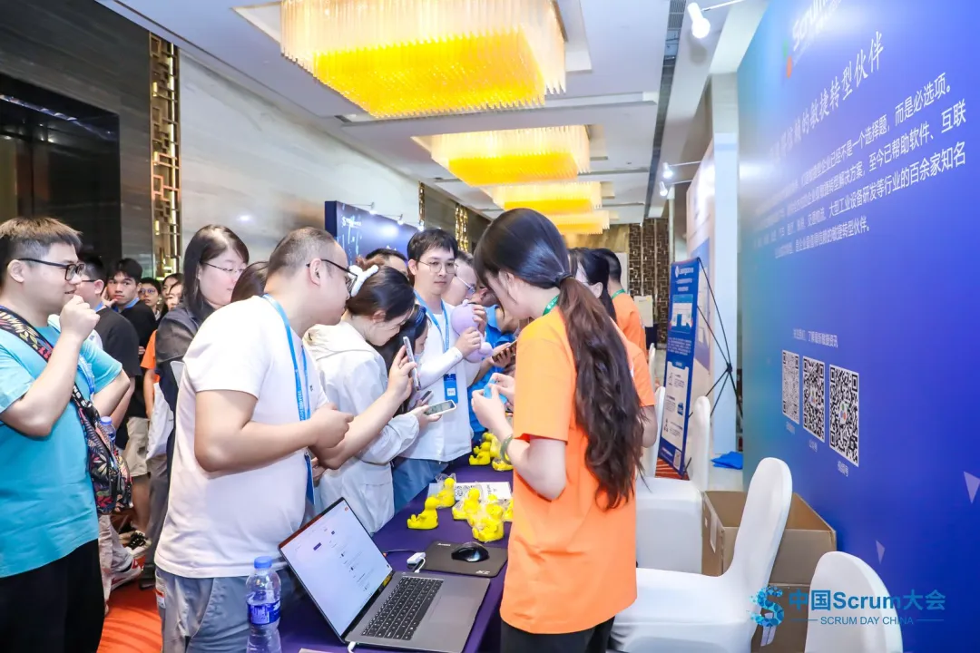 Scrum.org,Scrum中文网,Leangoo领歌的展台前,参会者们的身影络绎不绝。