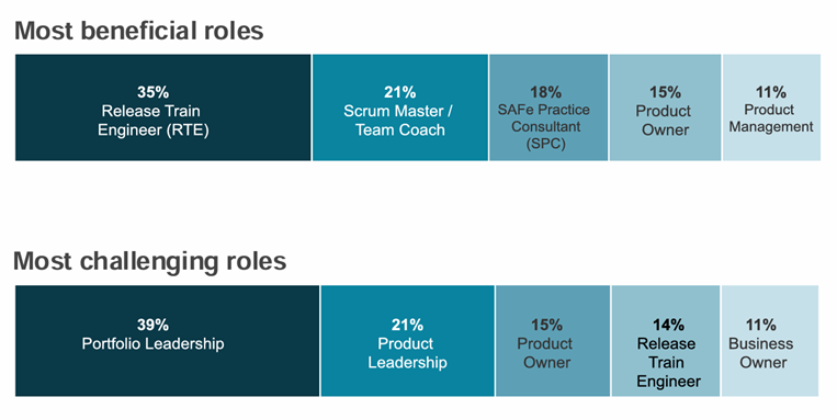- 角色过载普遍存在。角色往往被合并或吸收到传统管理角色中,责任分散可能削弱 SAFe 的效能。
