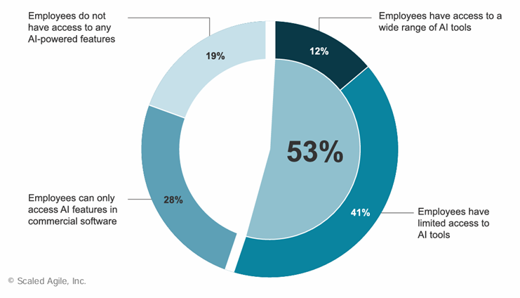 53% 的组织为员工提供了一定程度的 AI 工具以辅助工作。