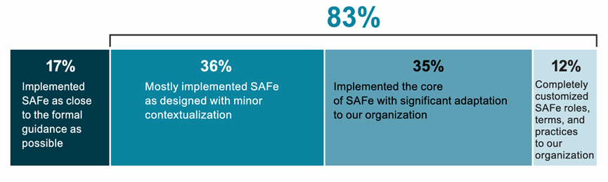 在调查中,采用混合方法,将SAFe与现有的门禁式或基于项目的治理模型相结合,是最常见的替代工作方式。