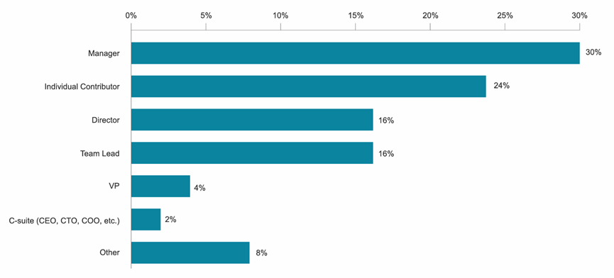 受访者被问及:“以下哪项最能描述您在公司内的当前职责级别?”