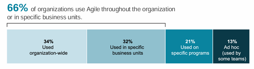 - 15%的组织采用混合模式,将敏捷与更传统的项目制方法相结合。