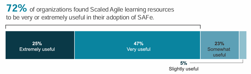 - 72%的组织认为Scaled Agile的学习资源在采用SAFe过程中非常有用或极其有用。