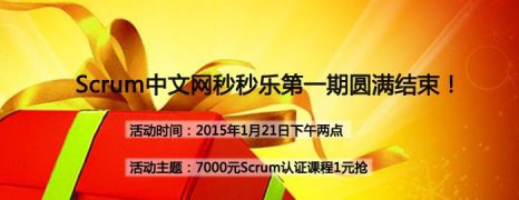 2015年1月中旬Scrum中文网在微信公众平台举行了第一期Scrum秒秒乐活动。本次活动的胜出者可携1元参加价值7000元的权威Scrum认证课程一次。本次活动旨在回馈长期以来支持Scrum中文网的会员,并吸引更多的人参与到敏捷中来。