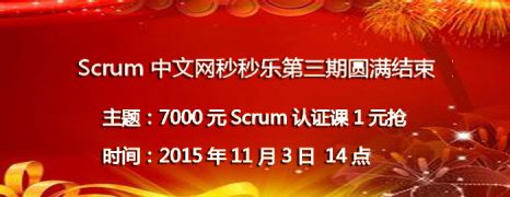 2015年11月3日Scrum中文网在微信公众平台举行了第三期Scrum秒秒乐活动。Scrum中文网秒秒乐活动旨在回馈长期以来支持Scrum中文网的会员,并吸引更多的人参与到敏捷中来。