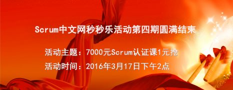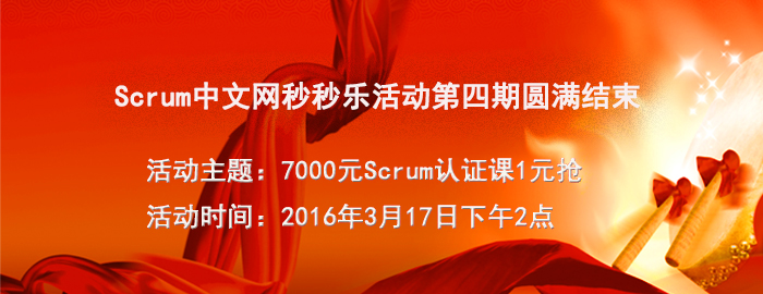 2016年3月17日Scrum中文网在微信公众平台举行了第四期Scrum秒秒乐活动。Scrum中文网秒秒乐活动旨在回馈长期以来支持Scrum中文网的会员,并吸引更多的人参与到敏捷中来。