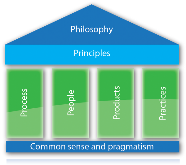 DSDM构建在常识以及实用主义之上,以确保敏捷价值观“个人和互动”优先于“过程和工具”得以贯彻。