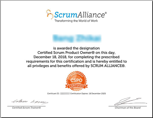 CSPO认证课程必须由国际Scrum联盟认证培训师授课,学员顺利完成两天课程后将获得Scrum联盟颁发的国际权威Scrum Product Owner认证证书,以及美国项目管理协会(PMI)16个PDU学分。