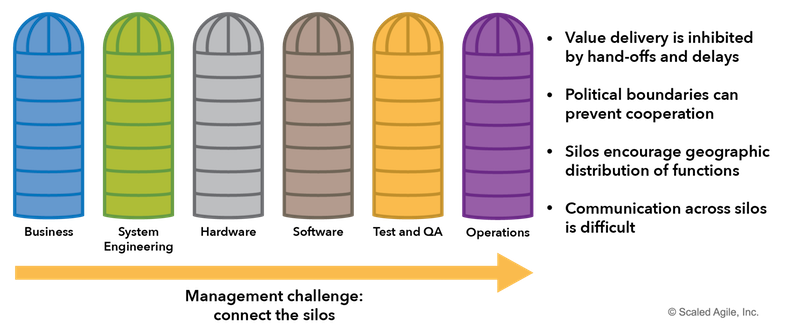 In such a functional organization, developers work with developers, and testers collaborate with other testers, architects, and systems engineers work with each other, and operations work by themselves. While there are reasons why organizations have evolved that way, the value doesn’t flow quickly, as it must cross all the silos. The daily involvement of managers is necessary to move the work across these silos, and as a result, progress is slow, and handoffs and delays rule. Instead, the ART applies systems thinking (SAFe Principle #2) and organize around value (SAFe Principle #10) to build a cross-functional organization that is optimized to facilitate the flow of value from ideation through deployment and release, and into operations, as Figure 3 illustrates.