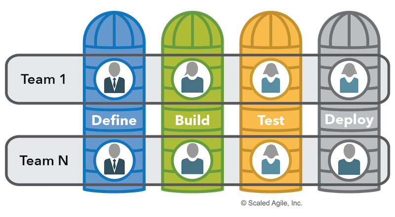 ARTs are typically virtual organizations that have all the people needed to define, deliver, and operate the solution. This new organization breaks down the traditional functional silos that may exist, as shown in Figure 2.