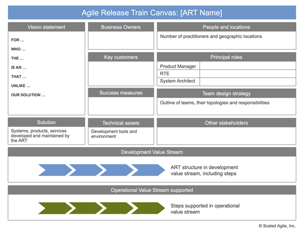The parameters and boundaries of the ART, its stakeholders, and its relationship to the value streams can be captured and summarized in the ‘ART canvas’ (Figure 6).