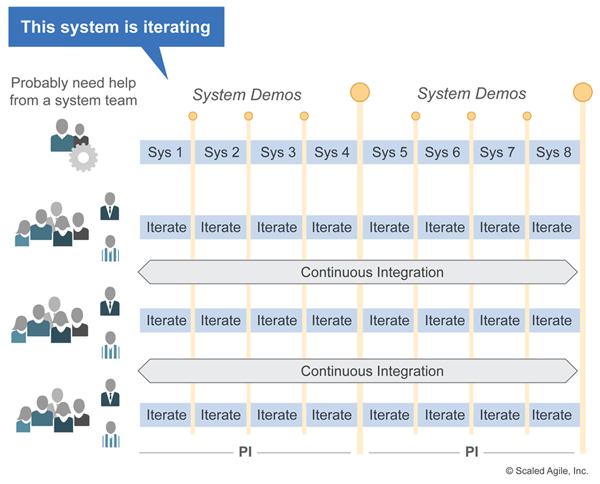 - A new system increment every two weeks – Each train delivers a new system increment every two weeks. The System Demo provides a mechanism for evaluating the working system, which is an integrated increment from all the teams.