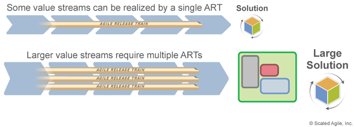 In the latter case, enterprises apply the elements and practices of Large Solution SAFe and create a Solution Train to help coordinate the contributions of ARTs and Suppliers to build and deliver some of the world’s largest systems.