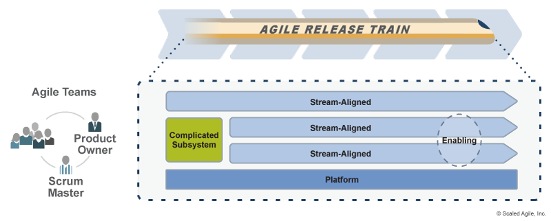 Each of these team topologies maps to a specific set of responsibilities and behaviors, and together they provide a clearer and better model for organizing Agile teams in SAFe. Further information, as well as guidance for applying these topologies, can be found in the Agile Teams article.